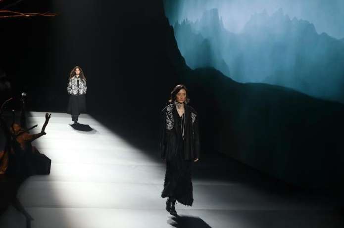 7月14日,第三十二届海宁中国皮革博览会期间,某品牌时装发布秀现场。(图/中新网)