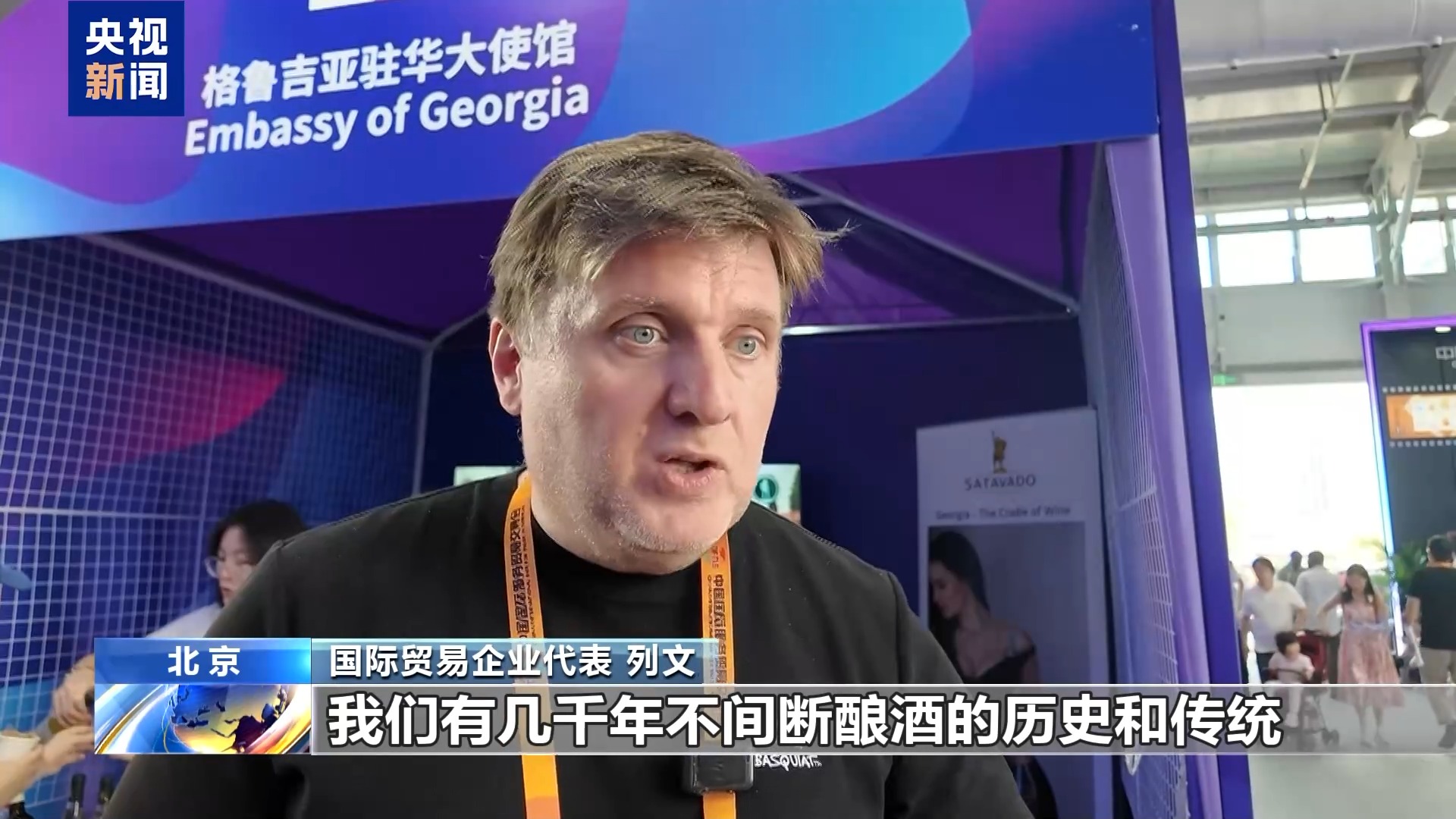 国际贸易企业代表列文:我们有几千年不间断酿酒的历史和传统,还有自己独特的葡萄种。我们也有自己酿酒的工艺,所以这么好的产品,我们一定要带到中国,给中国消费者和客户朋友们介绍,所以连续7年我们参加服贸会。