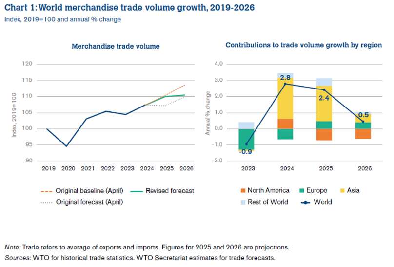 随着8月关税上调生效,WTO在4月预测的2025年部分影响可能会在今年晚些时候乃至2026年显现。