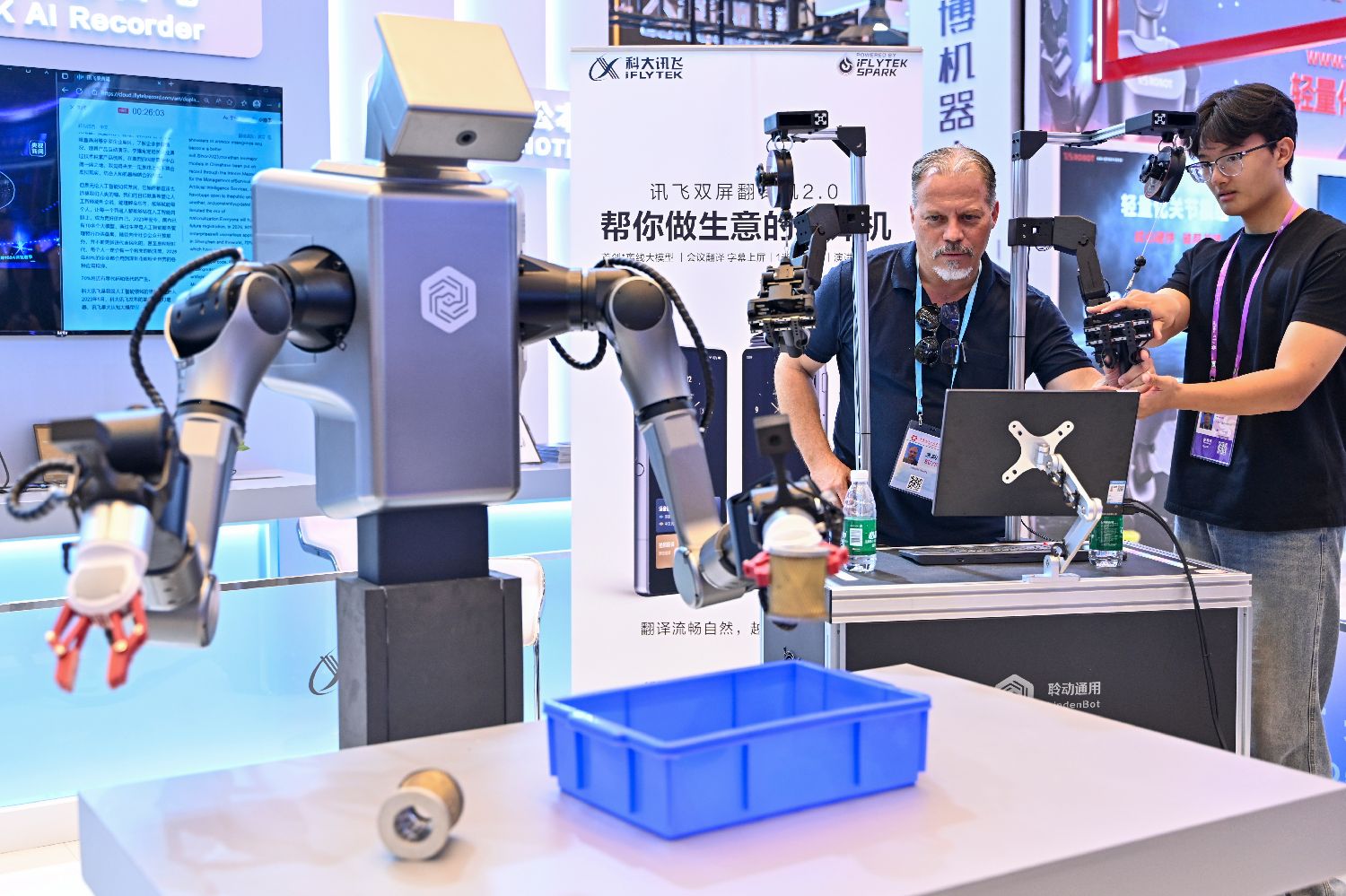 10月15日,采购商体验一款具身智能采训推机器人。(中新网)