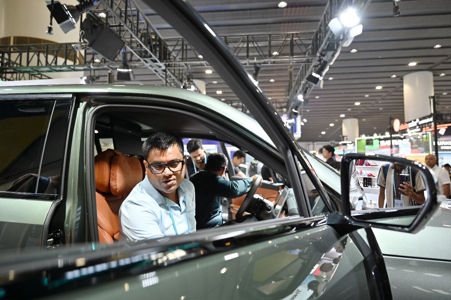 10月15日,新能源汽车吸引境外采购商体验。(中新网)