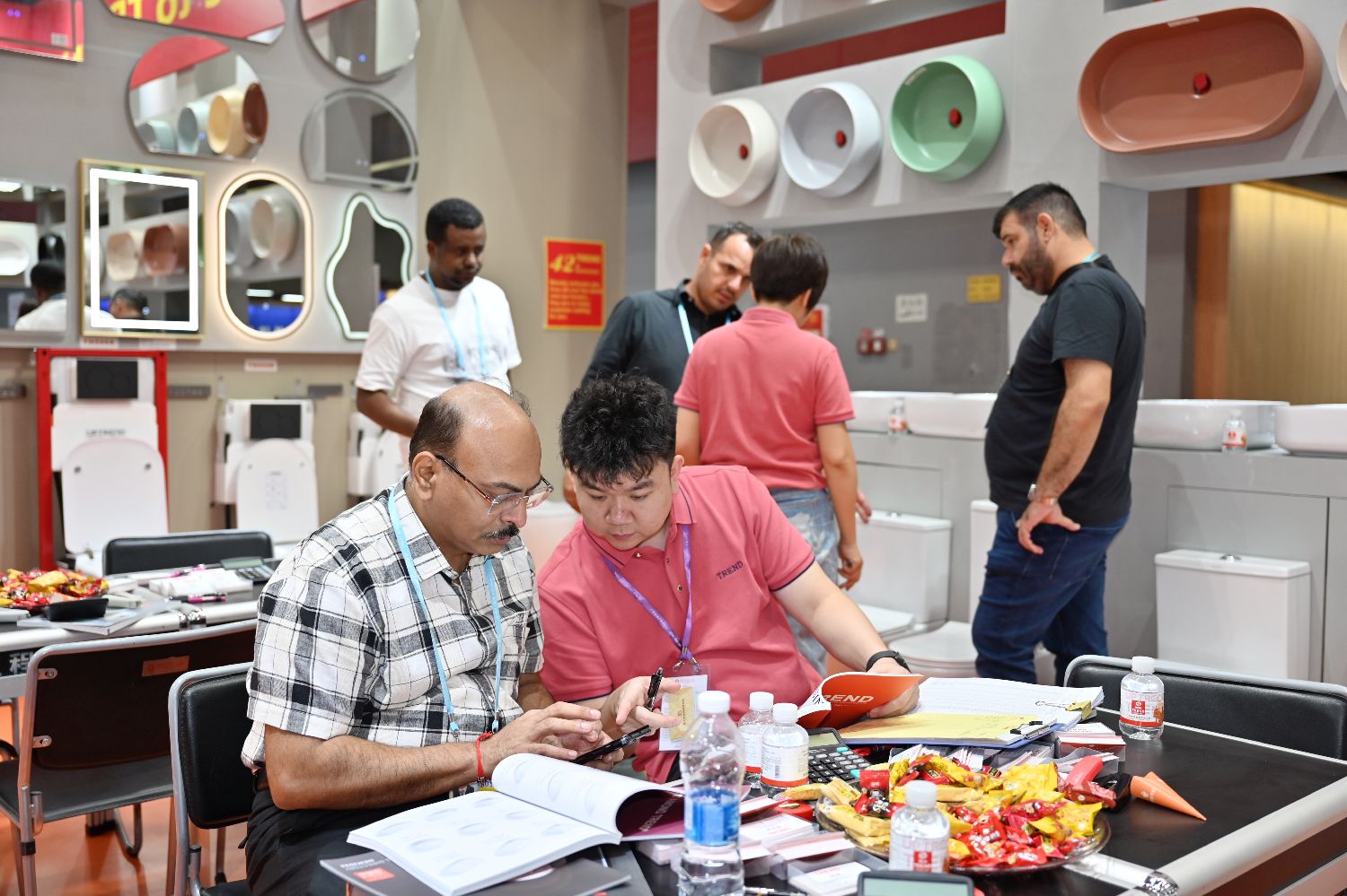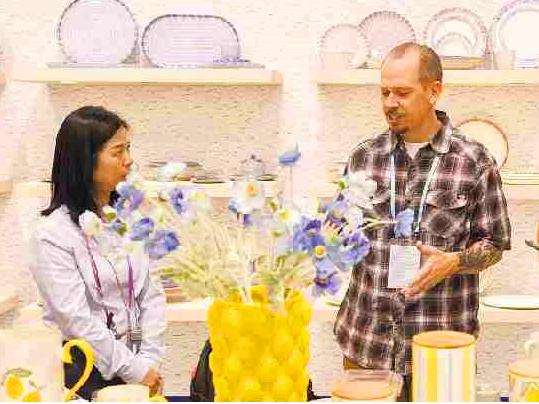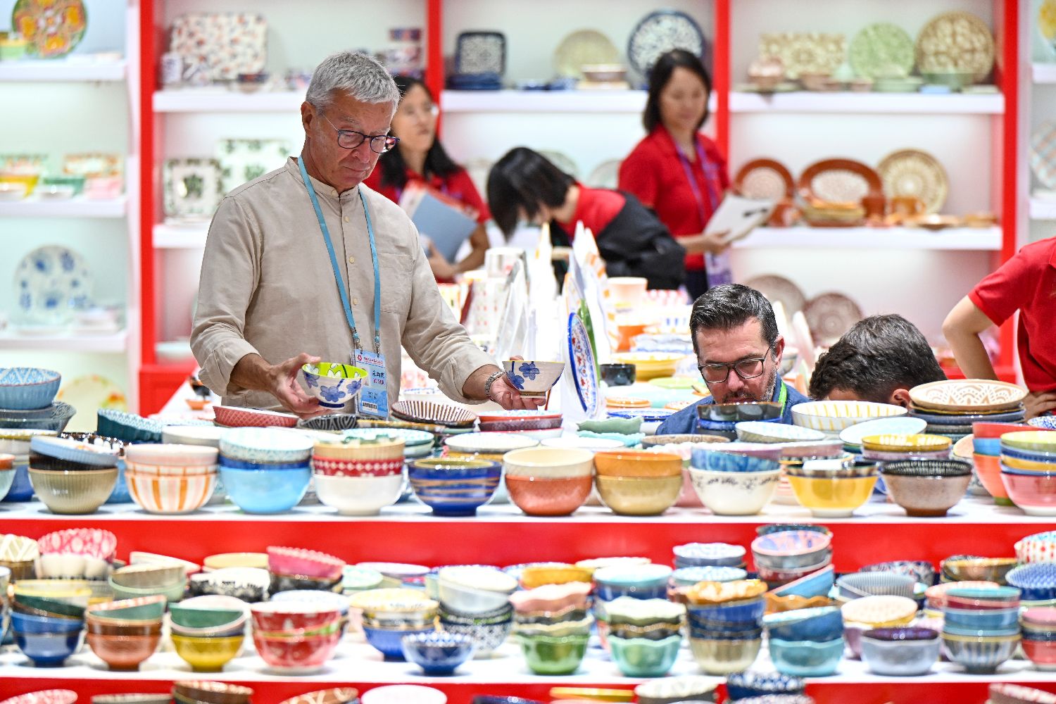 图为采购商在日用陶瓷展区挑选产品。(中新社)