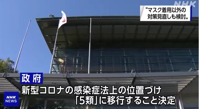 据NHK报道,日本政府决定将新冠疫情降至传染病控制法规定的第五类,与季节性流感等级相同。此外,从下月13日起,是否佩戴口罩将交由个人决定。