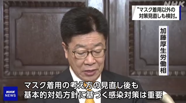加藤胜信告诉记者:“即使我们取消了佩戴口罩的措施,但疫情预防措施仍然很重要。我们将继续要求人们保持安全距离,勤洗手并保持室内通风。”·他补充说:“我们已经收到了厚生劳动省传染病小组委员会的意见,应尽早审查过度的感染控制措施,并传播有效的防疫方法。”