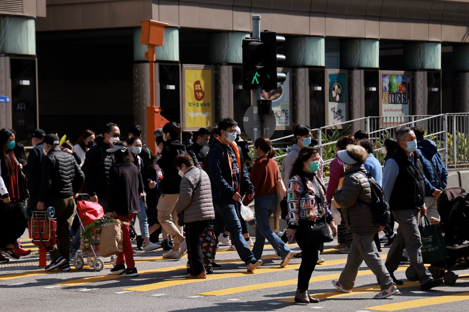 图为香港市民戴口罩出行。(图/香港中通社)