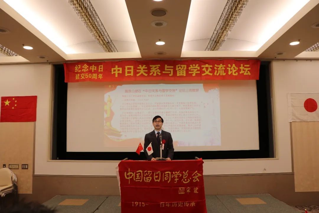 施泳公使在致辞中表示:在中日邦交正常化50周年之际,中国留日同学总会举办“中日关系与留学交流”论坛,回顾中日两国50年来的交往历程,探讨中日留学生对两国关系的作用,恰逢其时,很有意义。