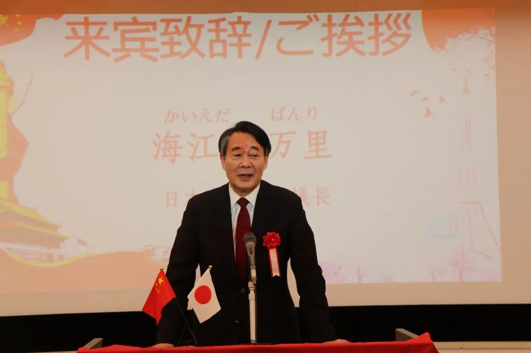 日本众议院副议长海江田万里在致辞中讲到,自己出生于1949年,与中华人民共和国同龄,非常有缘,虽然没有机会到中国留学,就自学中文,非常喜爱中国文化。千百年来,留学生始终是中日友好的重要桥梁,现在的留学生们对中日两国都是财富。