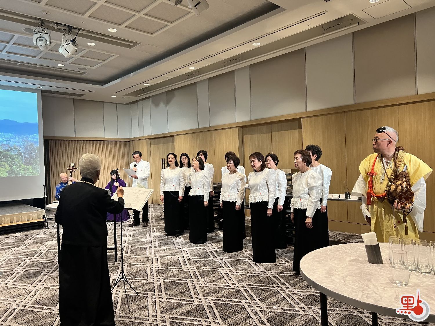 在嘉宾发言后,由王敏教授担任主持人,并邀请国际合唱团现场献唱由周恩来总理的两首诗篇改编的乐章《雨中岚山》及《雨后岚山》。优美的旋律让现场嘉宾为之击节赞赏。