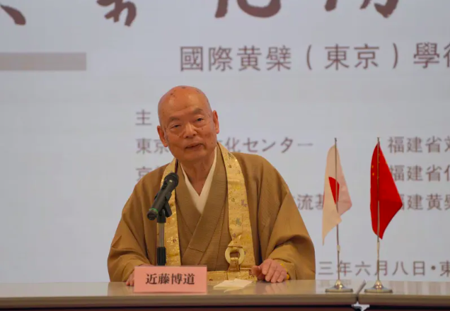 8日,在东京的中国文化中心致辞的日本黄金宗的近藤博道管长。(东京新华社发布)