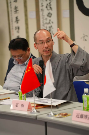 8日,就黄檗学的学问体系构建和国际黄檗学术资源共享发表讲话的福建省黄檗山万福寺方丈、福建省黄檗禅文化研究院院长定明法师。(东京新华社发布)