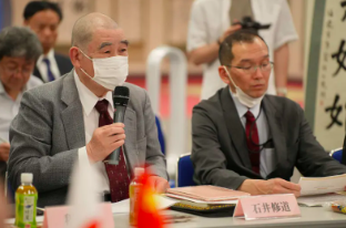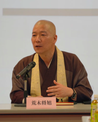 8日,在研讨会上发言的日本黄金宗荒木将旭宗务总长。(东京新华社发布)
