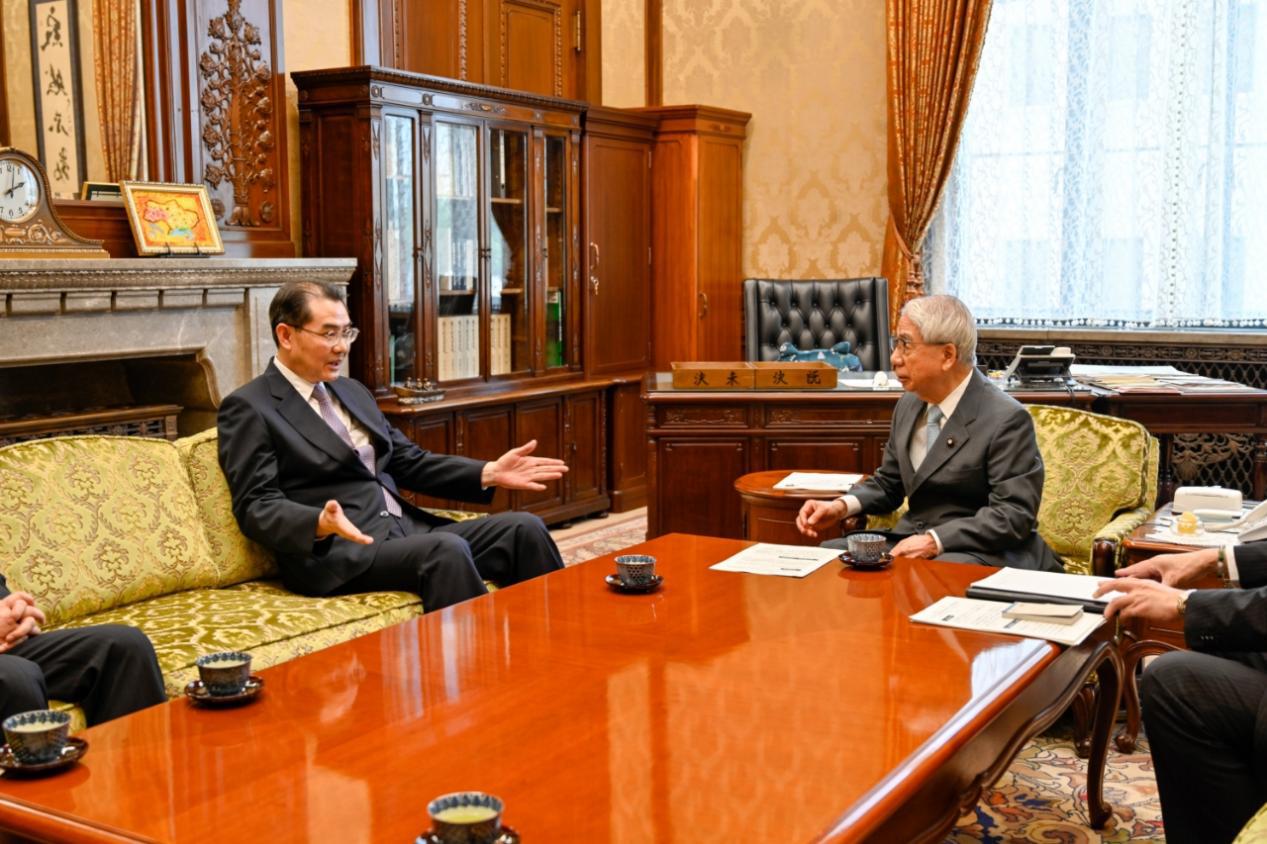 中国驻日本大使吴江浩转达全国人大常委会委员长赵乐际的问候,表示习近平主席去年同岸田文雄首相会晤中指出中日关系的重要性没有变,也不会变。双方应以两国领导人重要共识为指引,加强交流,妥处分歧,推动各领域合作恢复发展。期待双方积极开展议会交流,为构建契合新时代要求的中日关系贡献力量。