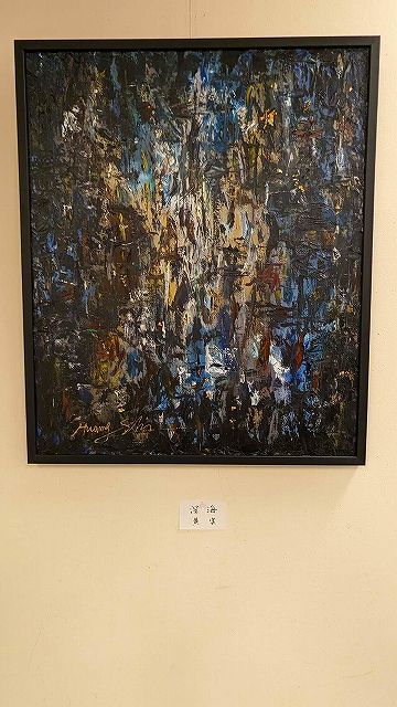 日中友好协会专务理事永田哲二在致词中盛赞这次风月同天艺术展成功举办,为庆祝中日和平友好条约缔结45周年添油加彩,他还特别强调说:黄实是我的好朋友,知道他能歌善舞,是有名的电影和电视剧演员,是具有有实力的企业家,并不知道他还是一位独具特色的画家,观赏了他展出的抽象油画作品,感触很深,看似不在意色彩丰富的塗抹,细看画中有戏,暗含着(幸福)(中华)等汉字,可谓匠心独具,令人感佩!