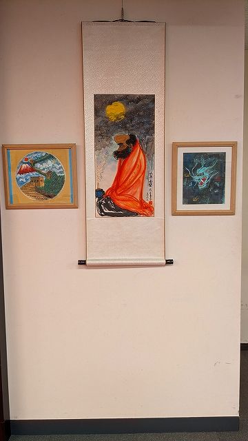 开幕剪彩结束后,来宾与观众朋友们仔细观赏展品,大家赞不绝,纷纷与作品作者摄影留念,交换名片或互加微信号;筆者的老朋友日中精武会联盟会会长常松胜(笔者1989年就为他拍摄过通臂拳专题电视教学片),他近些年在教授武术和养身功的百忙之中,练习书法他的魏碑体书法作品:缘、佛、爱三幅作品引起大家的好评,抢着在作品前与常松胜老师合影,还有人悄悄打听出售价格。