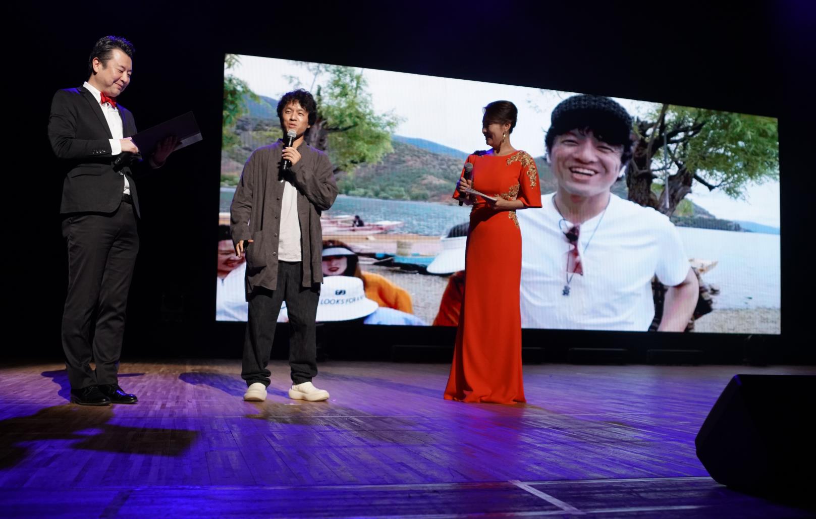 一位是中国纪录片导演竹内亮。晚会现场播放了竹内亮拍摄的纪录片《再会长江》的精彩片段,他表示,《再会长江》今年在东京某影院的票房非常优异,明年4月份,这部电影将在日本全国上映。竹内亮还表示,自己出生于1978年,与中日和平友好条约缔结同年。