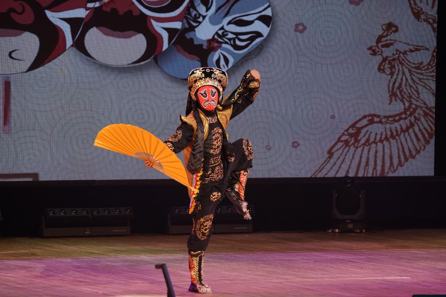 戏曲串烧《生生不息梨园情》中,中国京剧戏曲演员孔得伟化身美猴王,棍棒杂技耍得格外热闹;京剧演员刘妍和她的三个学生变身贵妃,婀娜多姿、仪态万方;中国变脸艺术中心代表王文强将川剧变脸搬上舞台,短短几分钟面孔千变万化;压轴出场的是著名京剧表演艺术家吴汝俊,他用昆曲演绎了《宋氏三姐妹》主题曲,以其精致的唱腔和独特的表演风格,获得了现场阵阵掌声。