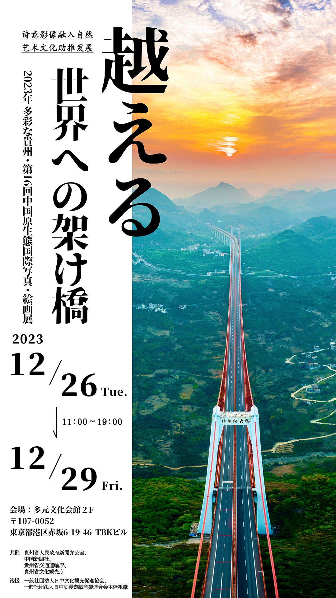 日本头条讯:“跨越——通往世界的桥梁”2023多彩贵州·第十六届中国原生态国际摄影大展绘画摄影联展(日本展)开幕式将于12月26日(周二)东京时间11:00举行在东京多元文化会馆举行。