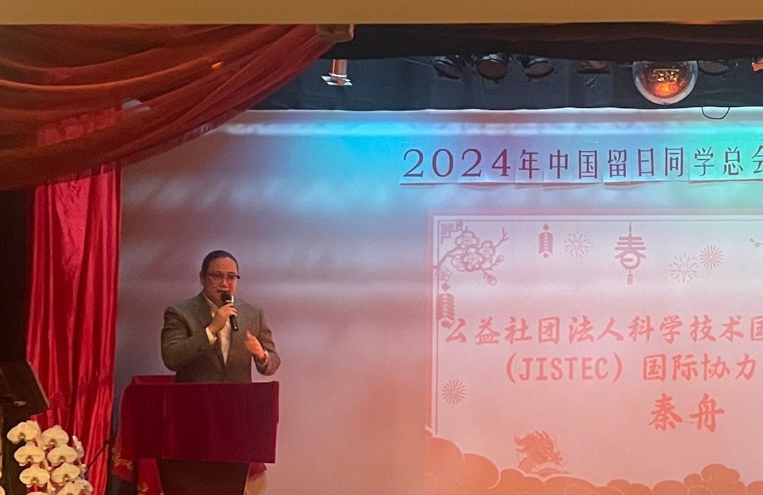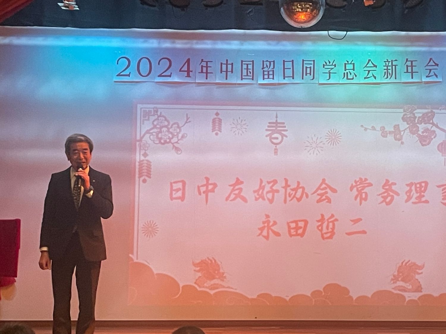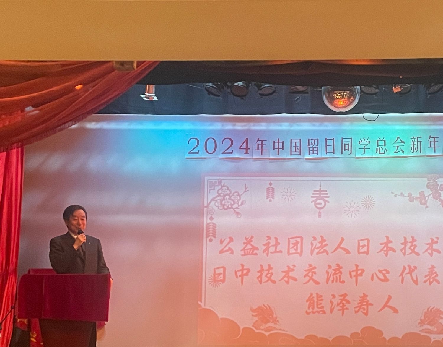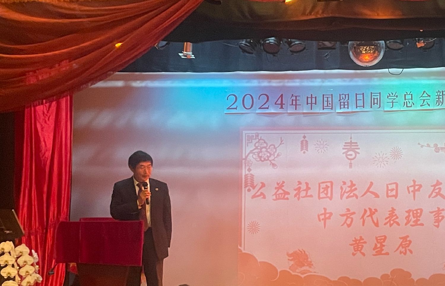 中日友好会馆中方总代表黄星原向本次新春交流会表示了祝贺。他在致辞中表示,希望服务于祖国建设、服务于中国留日同学总会的各位同仁身体健康,事业有成。