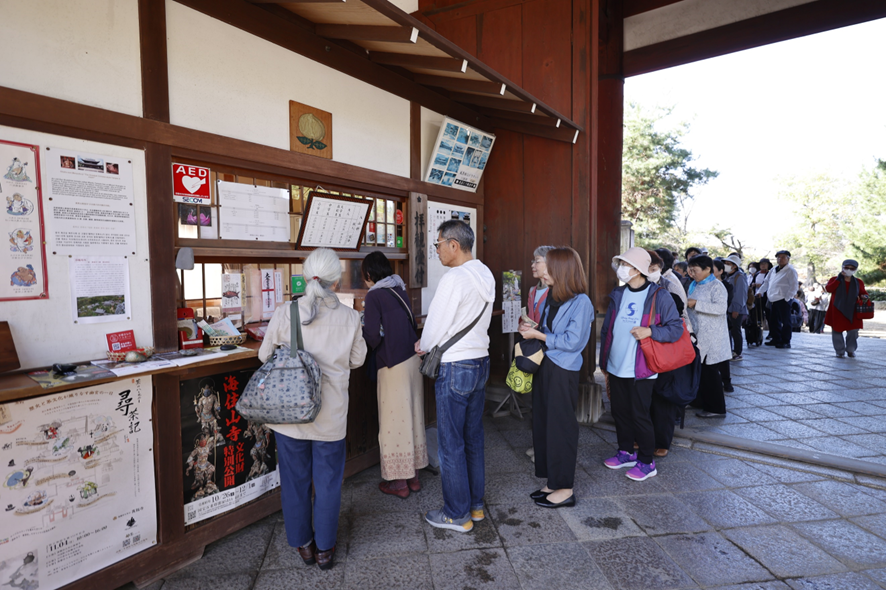 为了让更多日本民众都能沉浸式体验一场“寻茶”之旅,活动以万福寺的国宝及重要文化遗产建筑群为舞台,现场设置了浙江、武夷山、茶马古道等多个富有特色的茶文化体验区。游客们进入万福寺时会得到一张寻茶地图,伴随着轻柔的古琴声,在古建筑间寻访一处处茶香来源。按照地图提示集齐14条茶旅路线的印章,还能获得《茶和天下主题精品旅游线路》图册及精美的纪念品。