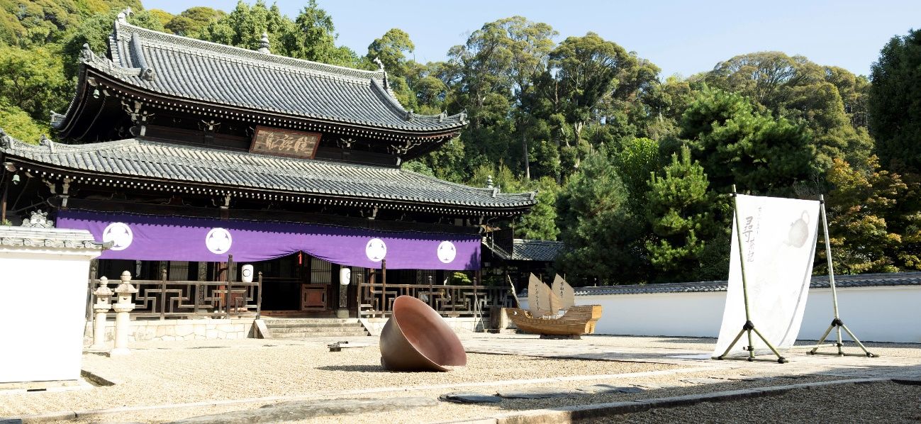 万福寺“开山堂”庭院里,特制的“隠元禅师宝船”静静伫立,仿佛在倾诉着隐元禅师历尽千辛万苦,将中国的优秀文化、生活习惯以及煎茶与茶道传入日本的伟大功绩。阳光透过“寻查记”幕布洒下斑驳的光影,空气中弥漫着淡淡的茶香与禅意,营造出一种宁静而深邃的氛围。