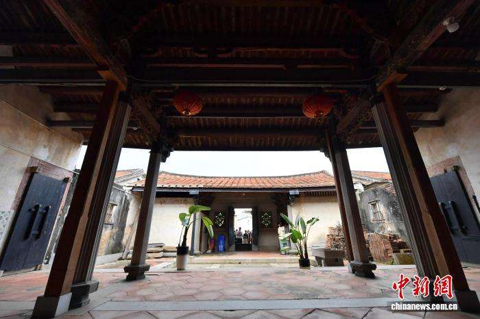 图为9月10日,曾氏番仔楼内的曾氏“大夫第”,设计精美,工艺精湛,为闽南风格建筑。中新社记者张斌摄