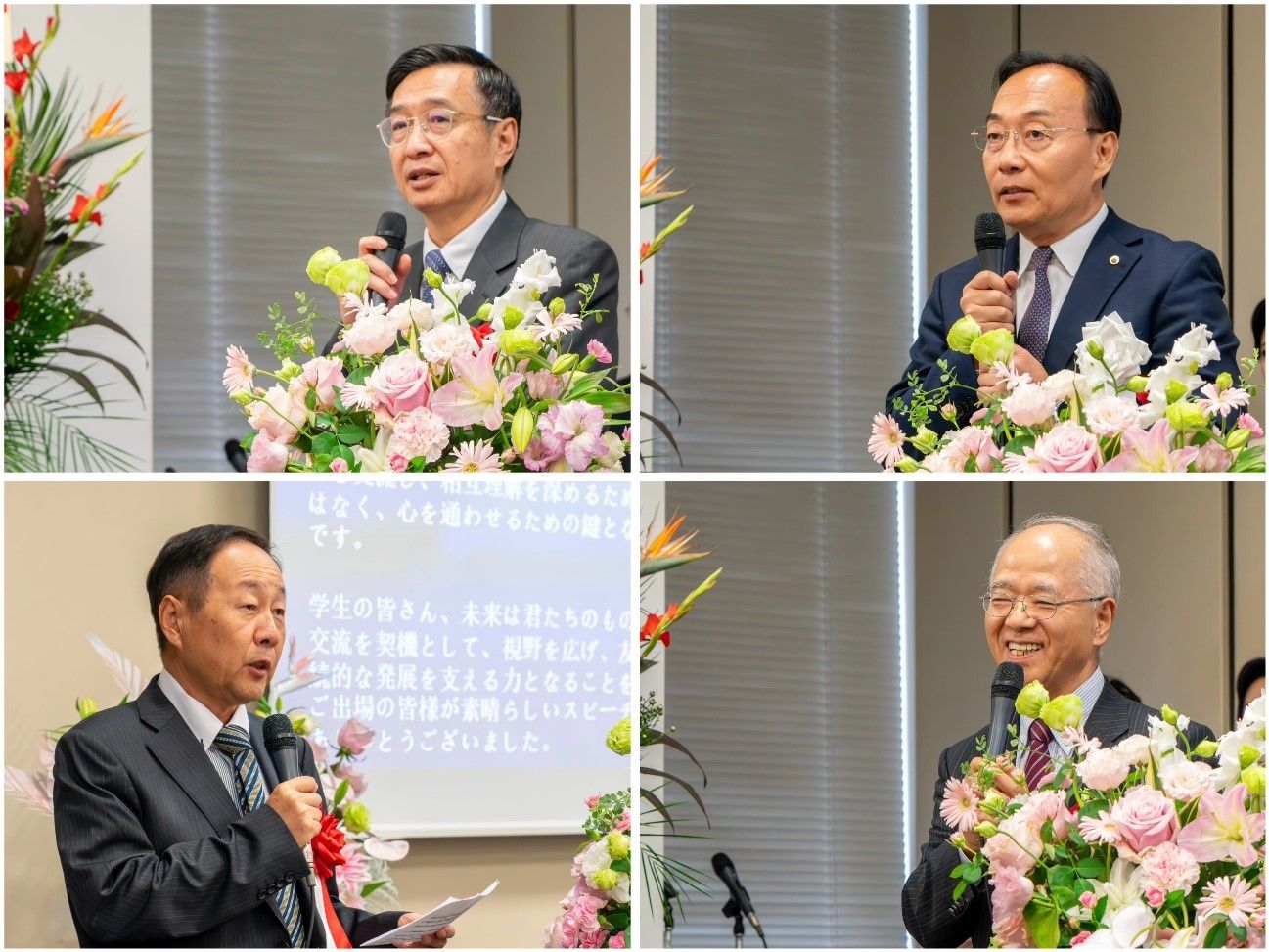 活动伊始,中国驻日本大使馆公使衔参赞杜柯伟、中国国际航空公司日韩地区支社社长冯力、前日本驻重庆总领事日中协会理事长濑野清水、全日本华侨华人社团联合会会长张书明等嘉宾出席开幕式并致辞。他们充分肯定了举办中日大学生演讲交流大赛的积极意义,勉励中日青年“在了解和铭记历史的同时,以开阔的视野和理性的思考,担当促进和平友好的使命”。日本前首相、公益财团法人友爱理事长鸠山由纪夫先生特意录制视频,为选手们加油打气,并祝愿赛事不断发展壮大。