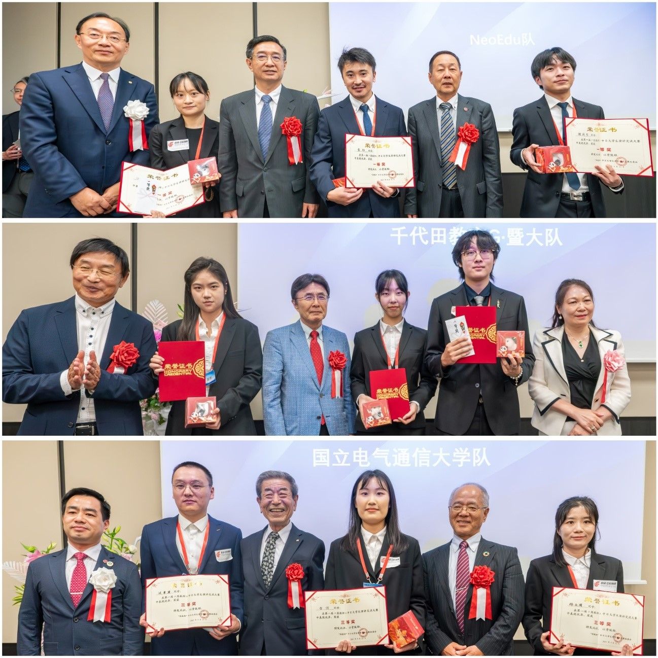 经过由刘迪、段瑞聪、张善俊、胡昂、徐文臻等知名学者组成的评委团严格评审,电气通信大学队最终荣获一等奖;千代田教育G・暨大队暨南大学日本学院代表队提出了“产学结合、国际视野、服务社会”的思路,发人深省,斩获二等奖;电气通信大学队获得三等奖。