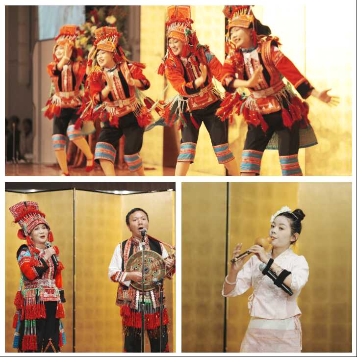 云南省少数民族艺术家现场表演精彩歌舞,充分展现了中华民族多姿多彩的文化魅力,赢得阵阵掌声与喝彩。