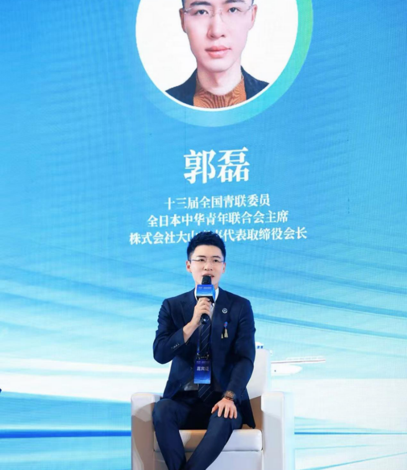 在圆桌派环节,全国青联第十三届海外委员、全日本中华青年联合会主席郭磊代表发言。郭磊主席结合日本侨团经验,分享了中日文化交流的实践案例,特别提到陶瓷文化的跨国传承与回流,生动阐释了中日文化互鉴的意义。同时,郭磊主席还展望了即将开展的中日体育交流,强调旅日青年将在文化、体育、科技等多领域发挥桥梁作用,呼吁广大侨海青年争做"文化传播者"与"合作推动者"。