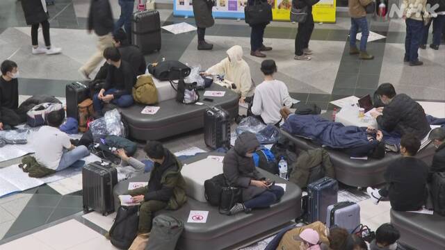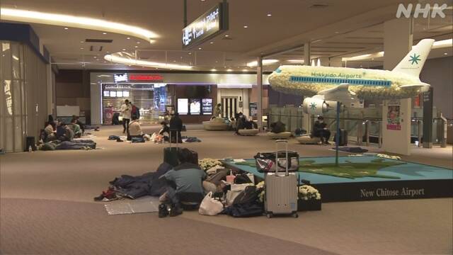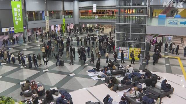 北海道新千岁机场因为大雪致铁路联络线停运,大量旅客滞留机场内