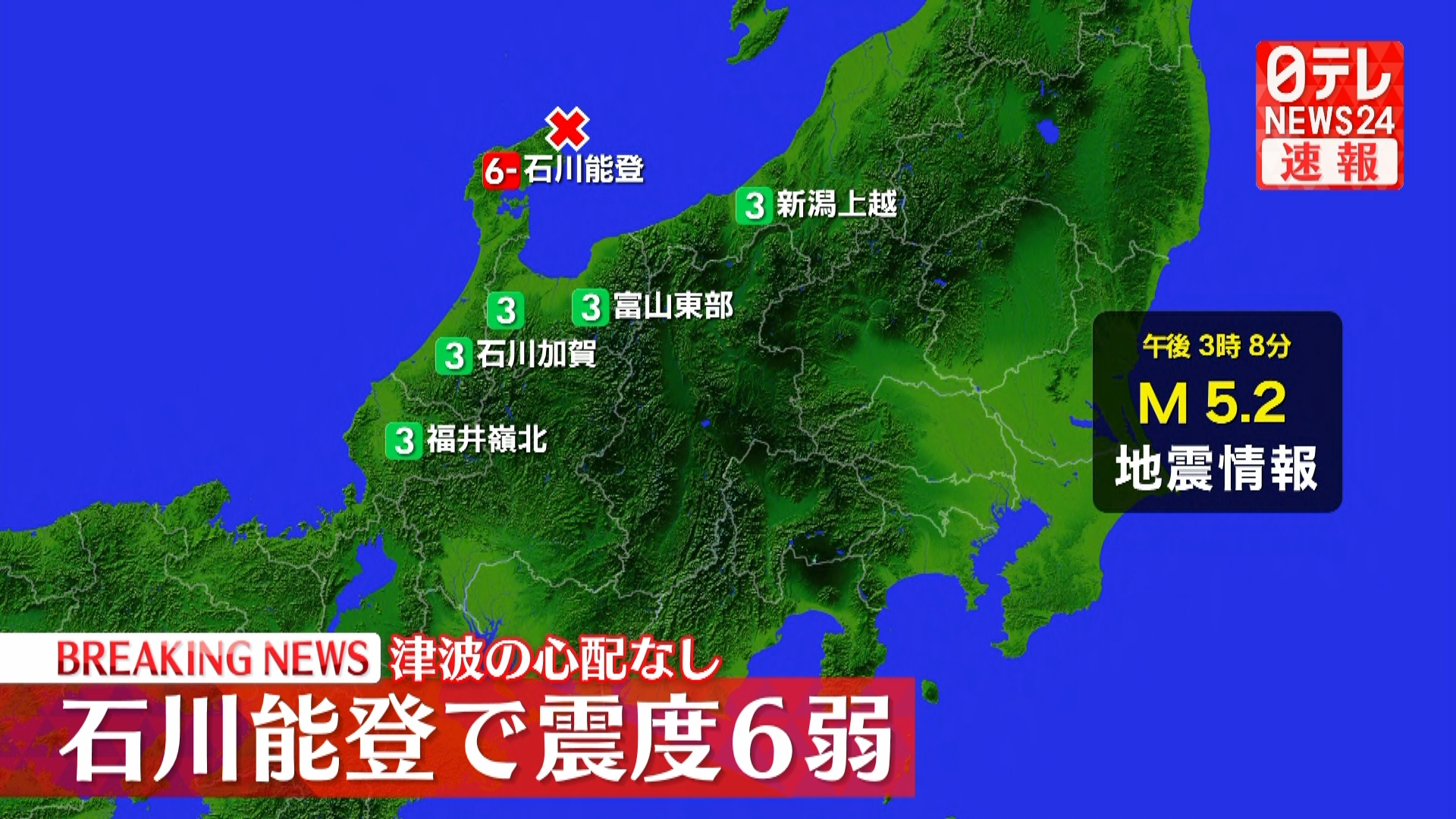 当地时间19日15时08分左右,日本石川县能登地区发生5.2级地震,最大震感为震度6弱,震源深度10公里。并且日本气象厅方面也提示当地民众在未来一周内或将还会发生同等规模的余震。