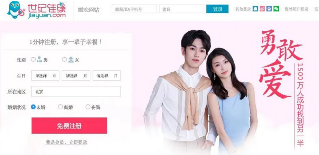 婚恋网站首页。(图/世纪佳缘网页截图)