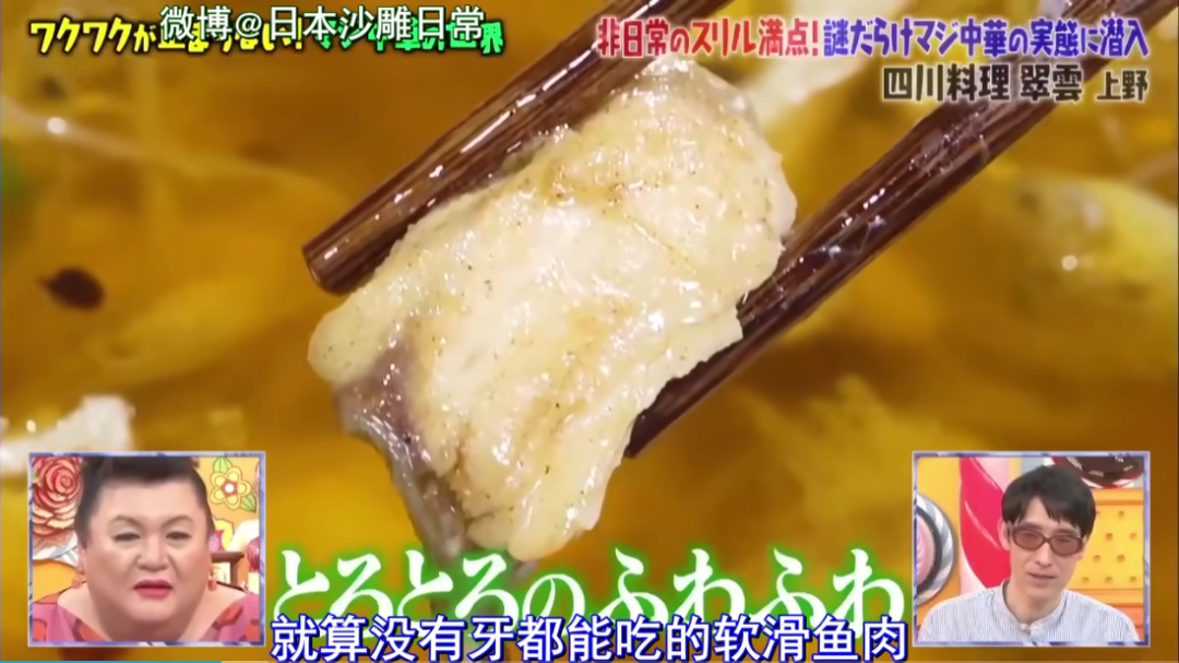 翠云的水煮鱼是属于江湖派,江湖派更讲究感观,看起来节目中点的鱼应该是龙利鱼。鱼肉入口,第一感觉就是滑嫩。