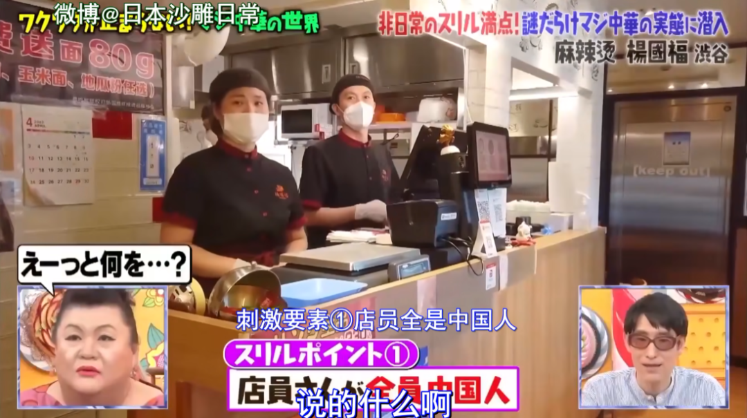 而美食作为无国界化的文化输出,日本电视台也经常播放中国菜的画面,记者试吃:钵钵鸡,铁锅炖鲤鱼,烧烤,火锅等。