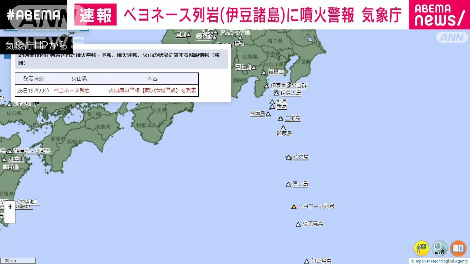 对此,日本气象厅在当晚7点30分时发布了火山喷发预警,并告知附近水面的船只需要时刻注意火山喷发的风险。