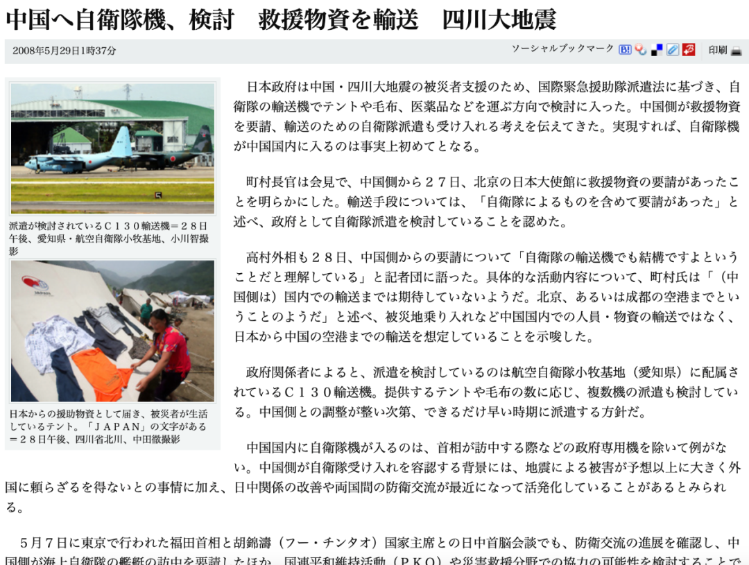 时任中国外交部发言人,现任外交部部长秦刚,表示“日方这一举动体现了日本政府和人民对中国政府和人民的感情,特别是在中国遭受灾害的困难时刻。”