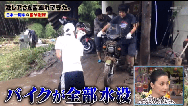 这是之前福岛地区大雨造成山体滑坡,导致许多摩托车陷入泥沼无法动弹,而村越芽生的爸爸叫上了当地居民去帮助他们,还友情修好了摩托车。