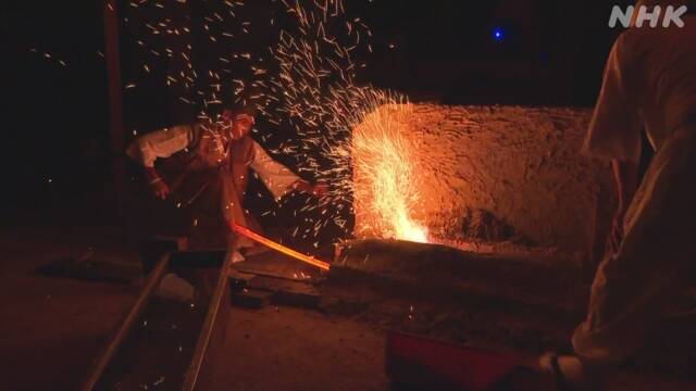 据悉,根据当地居民的请求,著名刀匠川岛一城将在神社中献上日本刀。而就在去年11月,川岛就在镇内的“靱負神社”中将玉钢材料锤打延伸,并随后用锻炼过的钢制成了一个大约80厘米长的刀身。