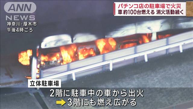 预计100辆车遭受损害,日本柏青哥店立体停车场发生火灾