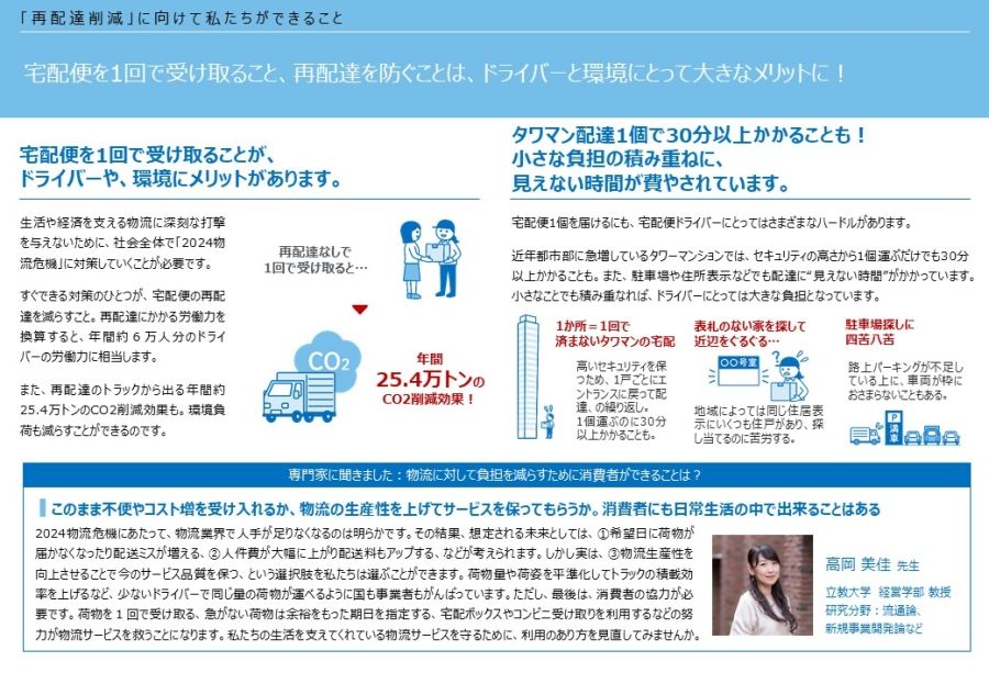 而对此,日本国土交通省的目标是将这一比例降低到约6%。并在网络购物服务的提供商中,有一些已经开始提供当消费者选择所谓的“放置配送”时会赠送积分等福利。