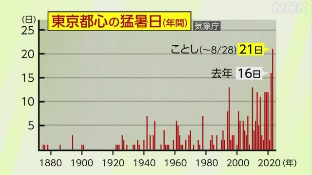 由于观测到的高气压团的控制导致了日本全国显著的高温天气。而在这个夏天,日本全国范围内持续的高温尤为严重,特别是7月下旬以后,当地多次观测到38度以上的危险高温天气。