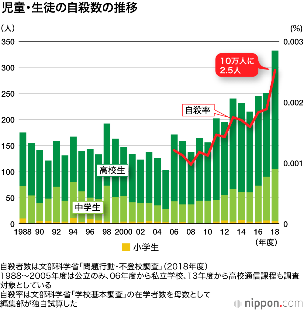日本中小学生自杀问题调查结果显示“学校问题占多数”