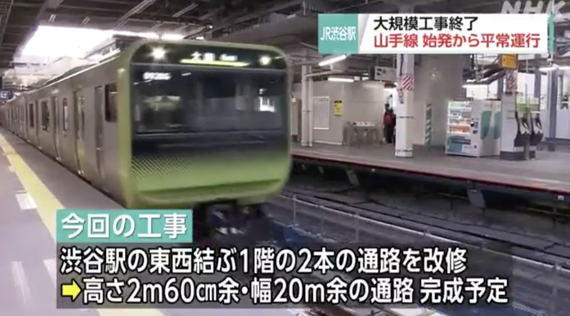 JR涩谷站开发施工今日完成,山手线恢复正常运行