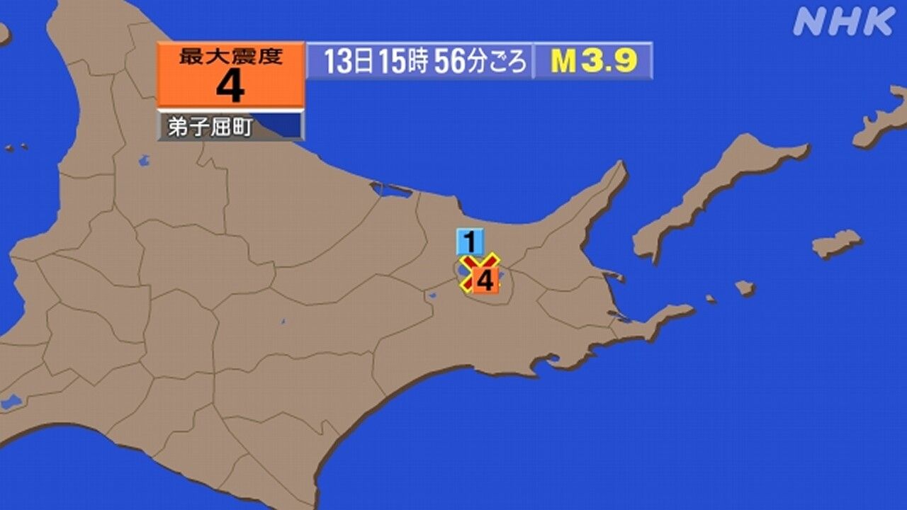 北海道弟子屈町发生震度4地震,无海啸发生风险