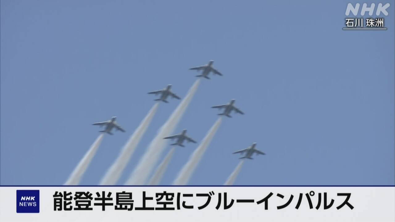 蓝色冲击波飞行表演队 飞越能登半岛 引得市民欢呼