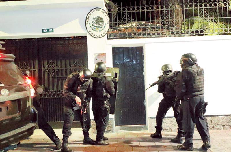 墨西哥外交部当天发布的声明称,厄瓜多尔警察强行进入了墨西哥驻厄大使馆并拘留了厄前副总统格拉斯。
