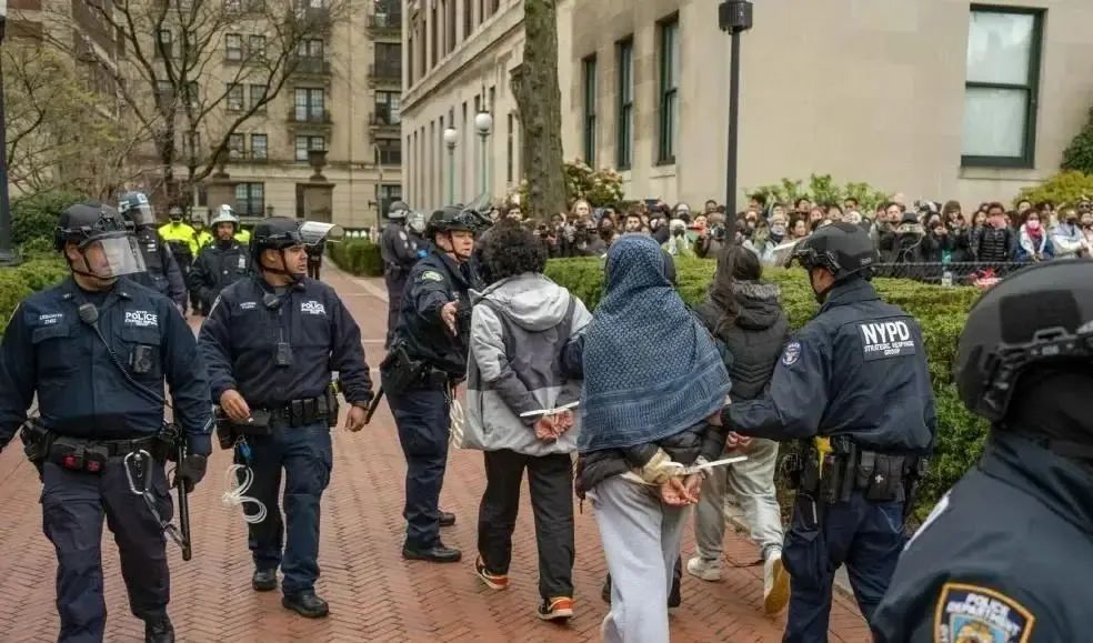 正义的诉求不仅没有得到回应,反而招来暴力镇压。美国总统拜登对“反犹太主义抗议”活动发出谴责,美国国会众议院议长迈克·约翰逊将抗议学生打上“暴民”“激进分子”“煽动者”的标签。而据美国《纽约时报》报道,美国警方在哥伦比亚大学逮捕100多名抗议学生后,22日又奉命进入纽约大学和耶鲁大学,逮捕了数百名学生。