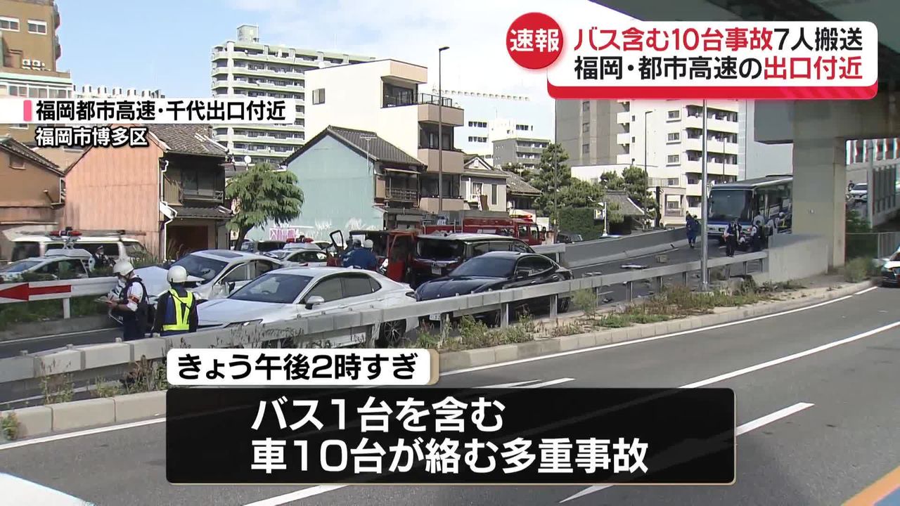 (日本头条讯)周六(27日)下午2点左右,日本福冈市博多区的一处高速公路出口附近发生了一起10车连环相撞事故。事故涉及多辆乘用车、巴士和卡车,造成至少7人受伤。