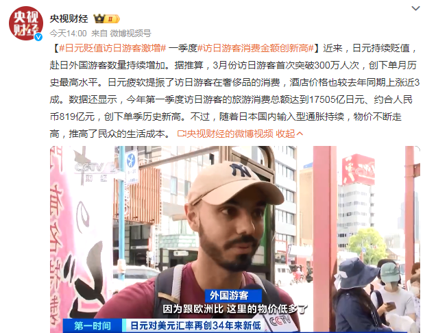 但是,人与人之间的悲喜并不相通。日元贬值,对要去日本旅游的海外游客,无疑是个好消息。同样的钱,能够兑换更多的日元,也就能购买更多的东西,等于旅游便宜了许多。