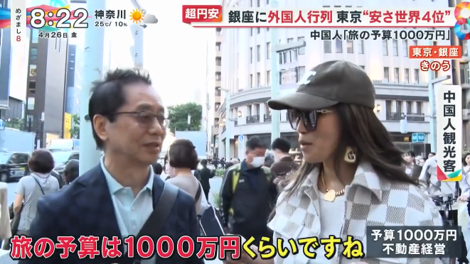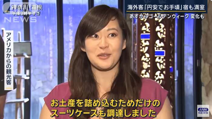 从美国去的游客听说日元贬值,直呼太惊喜了,还说她专门准备了装特产的行李箱。